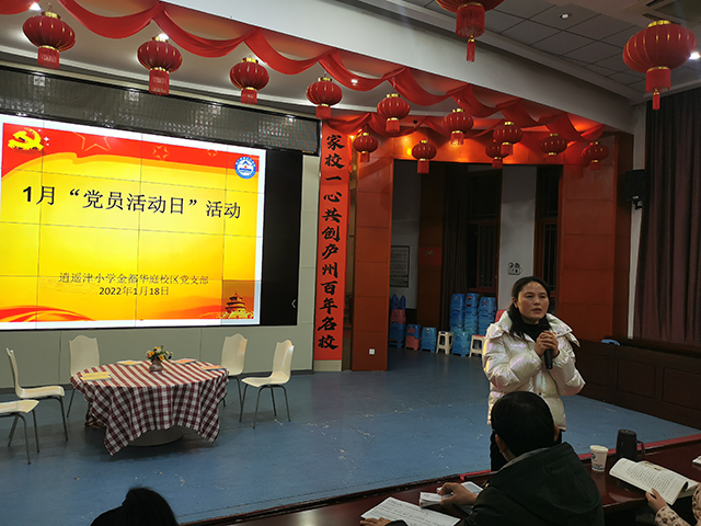 2022年1月18日下午,合肥市逍遥津小学金都华庭校区党支部开展了1月“党员活动日”活动,会议由党支部书记王峰主持,金都华庭校区党支部全体党员教师和入党积极分子参会。
