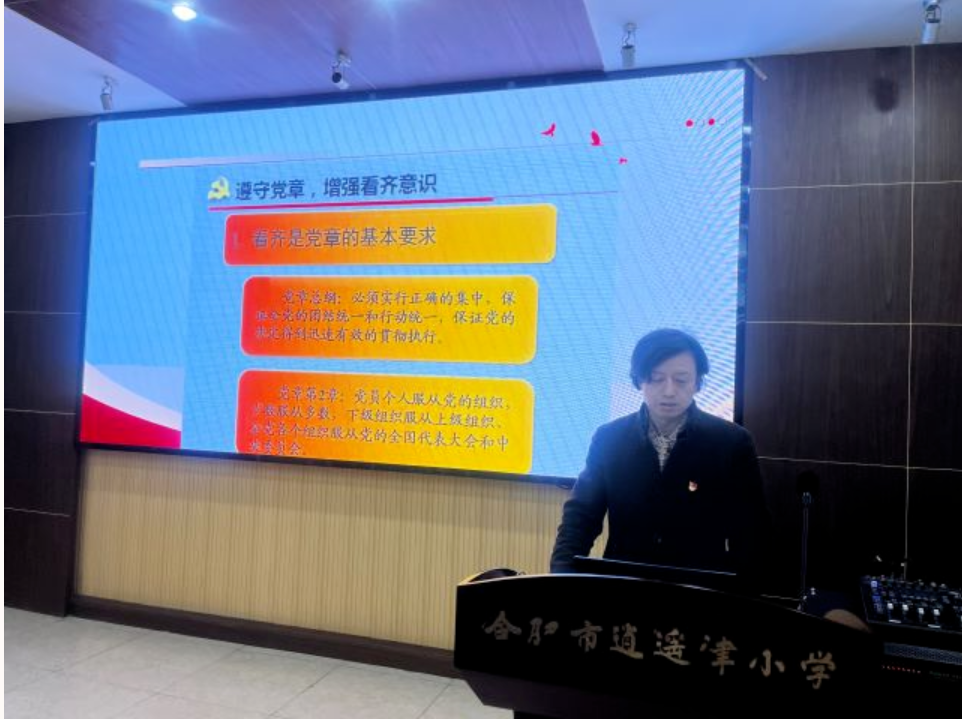 2025年3月27日下午,合肥市逍遥津小学金都华庭校区党支部开展3月“党员活动日”活动,会议由党支部书记王峰主持,金都华庭校区党支部全体党员教师及入党积极分子参会。