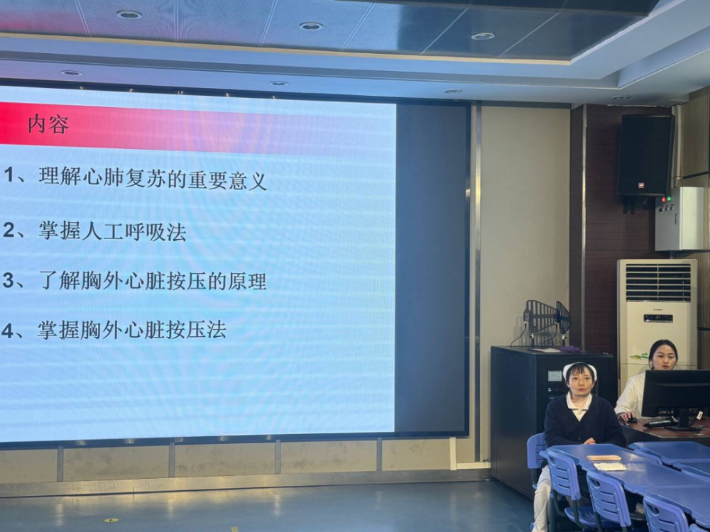 活动伊始,主讲医生张玲玲、卞志浩分别结合真实案例,深入浅出地讲解了心肺复苏术在突发心脏骤停情况下的重要性,并详细解析了操作流程中的关键要点,包括判断意识、呼救、胸外按压、开放气道、人工呼吸等步骤。他特别强调“黄金4分钟”的急救时间窗,指出及时有效的院前急救能为患者争取宝贵的生命机会。随后,丁玲娜、吴齐静护士借助人体模型,同步演示了心肺复苏术的标准操作流程,从按压部位、力度、频率到人工呼吸的规范动作,逐一进行分解教学,确保每位教师清晰掌握技术要领。