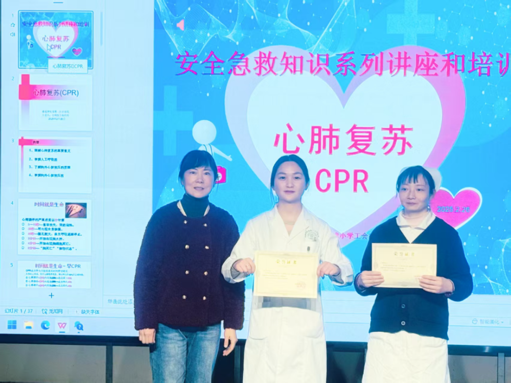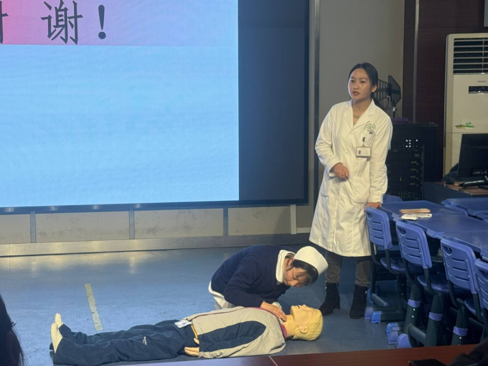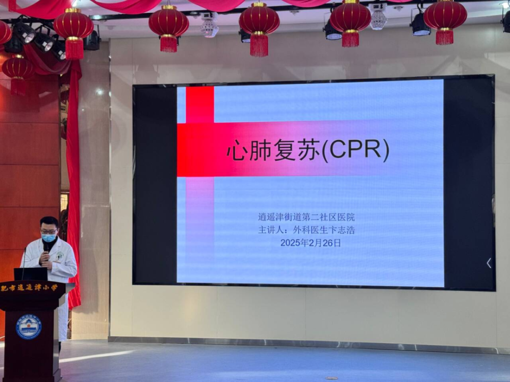 为进一步增强教职工应急救护能力,守护师生生命安全,2025年2月26日下午,合肥市逍遥津小学工会特邀庐阳区逍遥津第二社区医院业务院长齐燕、中级检验师马强祥、医生张玲玲、卞志浩和护士丁琳娜、吴齐静走进校园,分校区为全体教师开展了一场专业、实用的心肺复苏(CPR)急救技能培训。