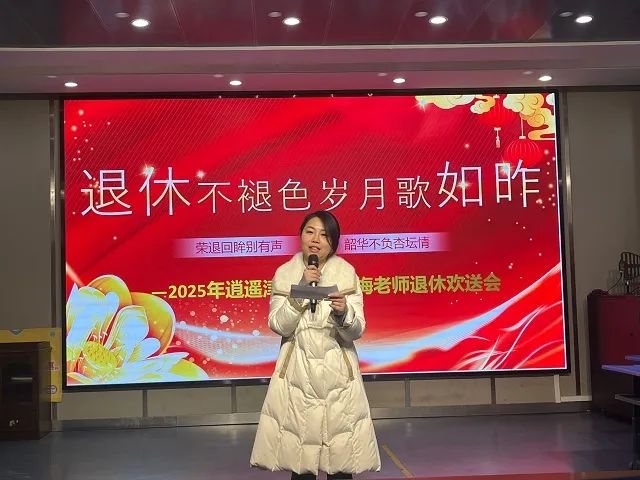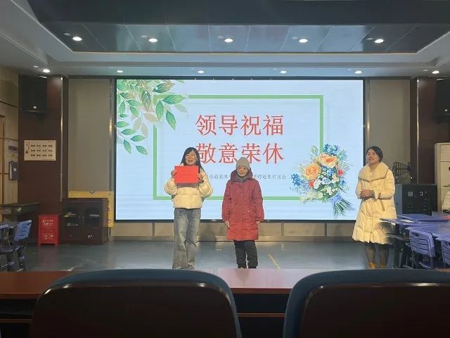 为进一步增强退休教师的归属感、幸福感、荣誉感,传递学校人文关怀,1月17日下午逍遥津小学学校领导成员与全体教职工齐聚报告厅,举办了一场温馨而庄重的退休仪式,以此向即将告别教育岗位、迈向人生新阶段的刘咏梅教师表达崇高的敬意与深深的祝福。仪式由工会委员戴振慧老师主持。