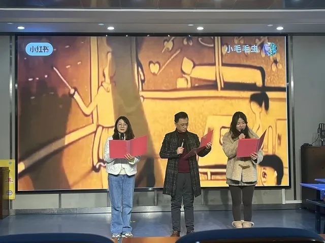 接着,潘桂琼、董撼、马冰清3位教师朗诵了他们为刘教师撰写的诗篇,轻缓流畅的音乐,声情并茂的朗诵,饱含着对刘老师最真挚的致敬,表达了对刘教师未来生活的祝福,希望她在退休后的日子里能够享受生活的宁静与美好,继续书写人生的精彩篇章。