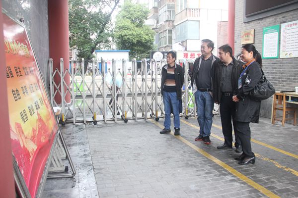 金鑫、张湘和在逍遥津小学校长姚明伟、副校长韦朝根的陪同下首先对校门口环境布置,责任督学督导公示牌悬挂的情况进行了查看,金鑫赞扬了学校公示牌悬挂位置醒目,督学姓名、督导事项和投诉联系电话等内容明确。