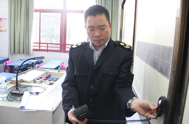 检查组在校长姚明伟和副校长韦朝根的陪同下,首先到直饮水点、教室等进行实地勘察和并用专用仪器进行测量查看,然后对相关制度建设、餐饮卫生档案、直饮水安全台账及生产批件、传染病防治资料等进行检查。