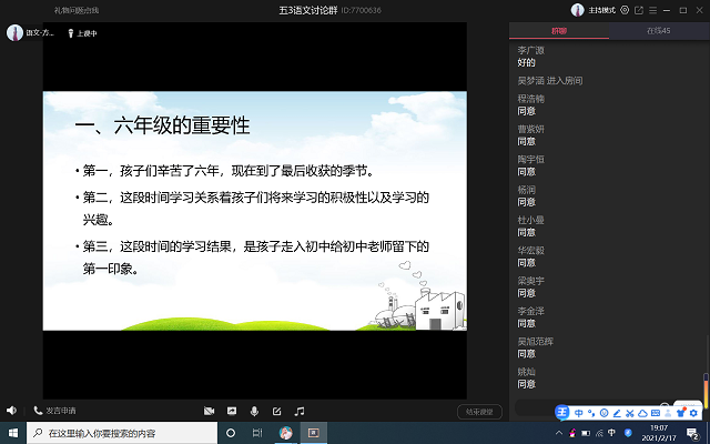 合肥市逍遥津小学一直致力于家校合育交流平台的构建,新学期开学在即,为了使孩子们能够以一个良好的精神面貌迎接新学期,同时积极关注开学前学生的焦虑情绪,呵护学生身心健康成长,2月17日逍遥津小学金都华庭校区开展了2021年春季开学前线上家校交流会。