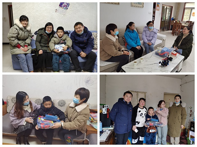关爱小队每到一个家庭,都亲切地与家长和孩子面对面交谈。校领导诚挚表达学校的慰问心意,班主任详细汇报学生在校的学习生活,科任老师结合自己的工作感受,与家长坦诚交流,既有言辞恳切的真挚建议,更有善意温暖的殷切鼓励。新书包、新文具盒、新画笔一系列新年礼物让孩子们开心不已,家长感动不已。与此同时,安全教育也是本次走访活动的重点,假期安全更不容忽视。在走访中,老师们在安全用火、安全用电、交通安全、疫情防控等方面都做了重要的宣传和提醒,确保学生安全度过假期。
