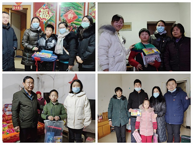 在牛年春节即将来临之际,为使学生度过一个愉快祥和的寒假,近日,合肥市逍遥津小学教育集团校长吴晓静、党总支副书记唐蓓、副校长王峰、教导处张蕾副主任、教导处魏菲菲副主任以及大队部周倩倩老师分成三个关爱小队,携手班主任对金都校区部分学生进行了走访关爱送温暖活动。