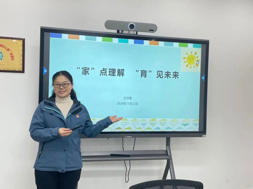学校党员教师、心理专职教师王守菊向大家介绍了逍遥津小学的心理健康工作开展情况汇报,并给家委会成员带来《“家”点理解 “育”见未来》心理健康教育指导讲座。最后她希望校级家长委员会能够在大学年充分发挥自己的作用,使家长和教师能够形成教育合力,让孩子们健康茁壮成长!