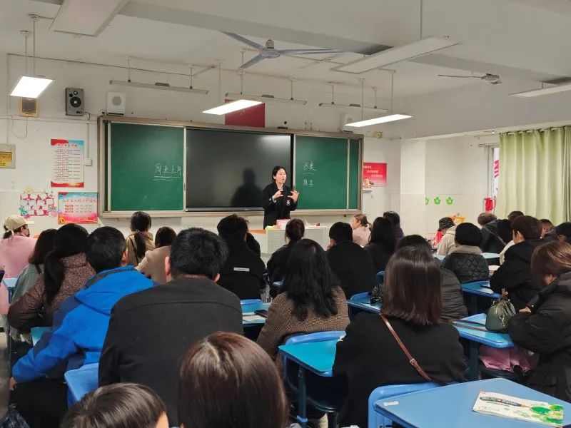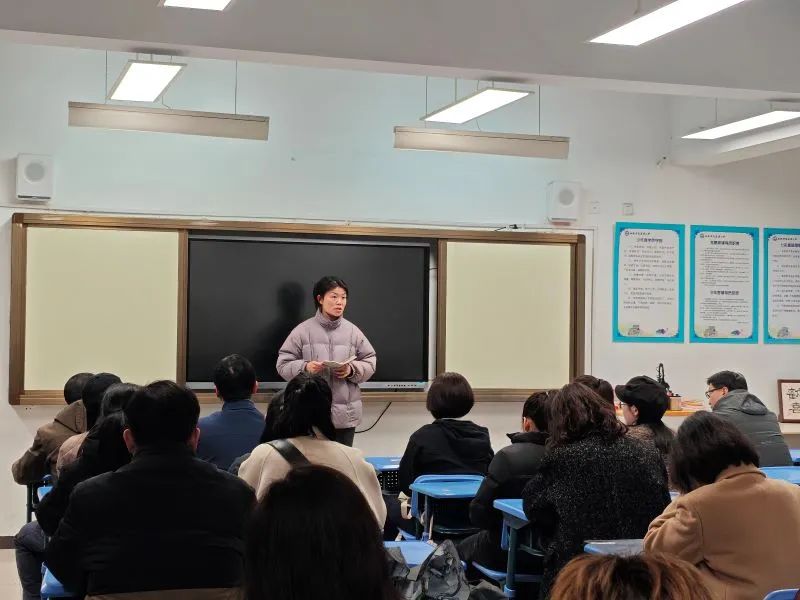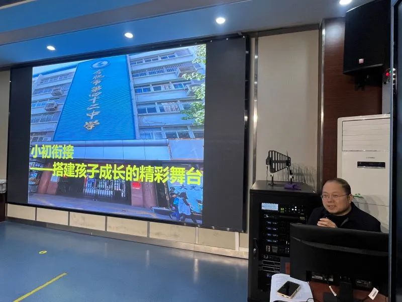 2025年3月12日下午,逍遥津小学寿春路校区在一楼多媒体教室召开小升初心理讲座暨毕业学籍信息审核工作会。会议由教导处王静主任主持,特邀合肥市第四十二中学党支部书记戴鹏程同志进行专题讲座,六年级全体家长参加了会议。