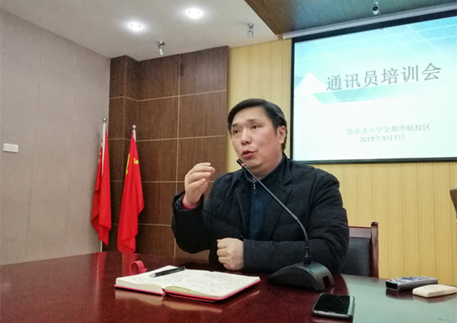 “好的新闻需要一个好由头,需要好故事,需要好标题,站位要高,立意要远,宣传正能量……”2019年3月7日,逍遥津小学校长姚明伟对学校通讯小组成员提出如示要求。当日,金都校区各部门负责人、年级组长、备课组长及通讯员齐聚会议室召开2019年度学校通讯员会议。旨在让让通讯员充分感受学校对宣传报道工作的重视,以及各自肩负的使命感,积极发挥通讯员队伍作用。