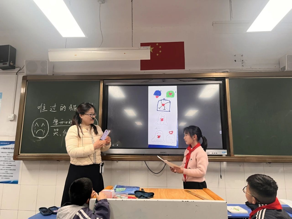接着,王老师巧妙地利用绘画的方式,让学生们将内心难过的感觉具象化,通过画笔倾诉心声。这一创新的教学方法极大地激发了学生们的兴趣和创造力。