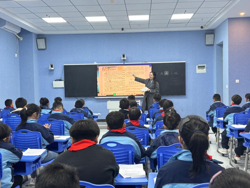 第二节课,凌菲虹老师执教的《海滨小城》则呈现出另一种清新质朴的风格。凌老师从整体入手,引导学生理清文章“大海—海滩—庭院—公园—街道”的写作顺序,体会作者由远及近的观察视角。教学中,她通过关注重点语句、借助图片等方式,引导学生关注“镀”、“寂寞”、“喧闹”等字词的妙用,以及拟人修辞手法所带来的画面感,丰富学生对于祖国山河的认识和感受。