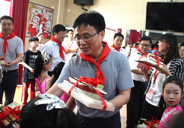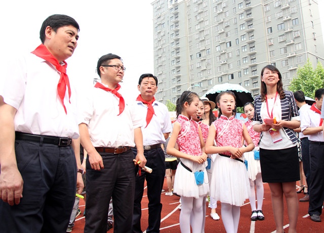 合肥市市委宣传部副部长、市文明办主任魏常年,市教育局基教处处长谢华国,合肥市庐阳区区委书记吴劲,区委宣传部长李仲生、教体局党委书记张振发、局长殷硕景等领导也赶来参观,并为孩子送上节日的祝福和问候。