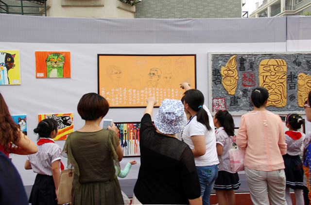 “妈妈,妈妈,快来看,快来看,这张照片上那双手比头还大的孩子就是我……哈哈……太好笑了!”“这就是我们袁校长,我们宋老师画的真像!”“我的作品在这里,我终于找到它了。”……5月31日下午逍遥津小学金都华庭校区操场上惊呼、赞美声不断,一场以“绿眼睛的美丽世界”为主题由五大展区(主题广场展区、传统美展区、想象美展区、生活美展区、影像美展区)组成的视觉艺术展正在上演,为这个属于孩子们的节日送上一份厚礼。