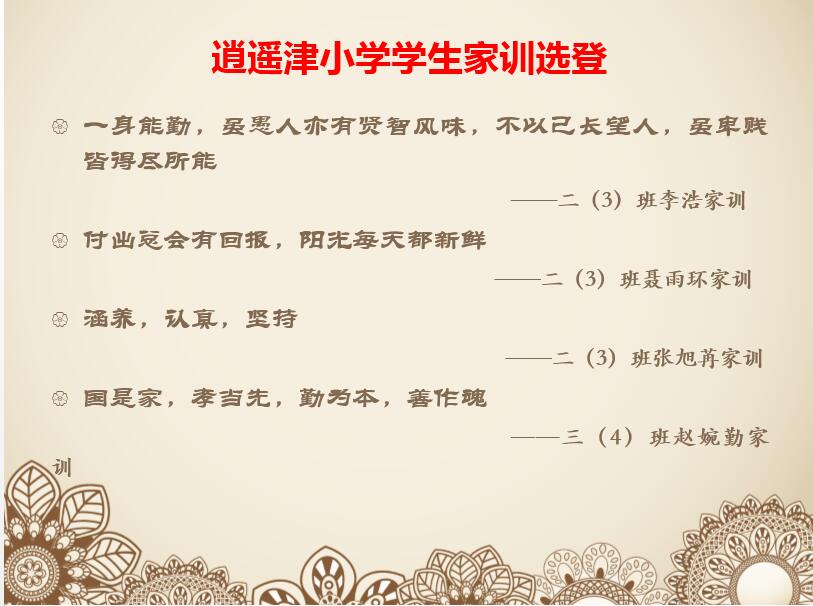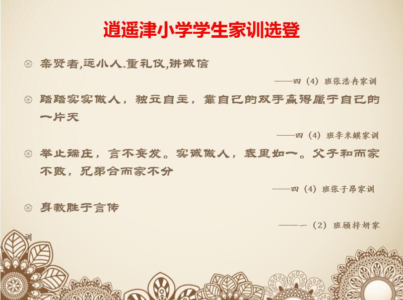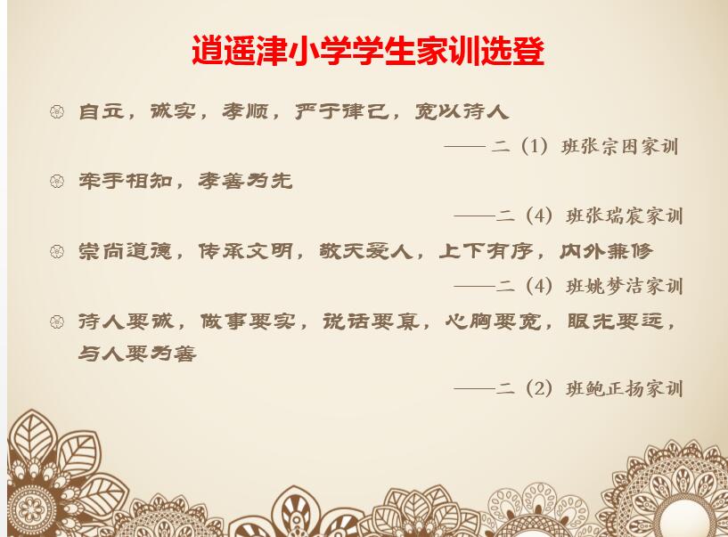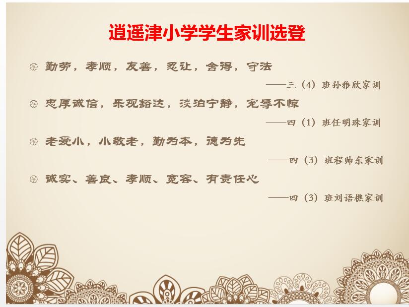 逍遥津小学学校礼仪教育课题主题活动——“家风家训”征集