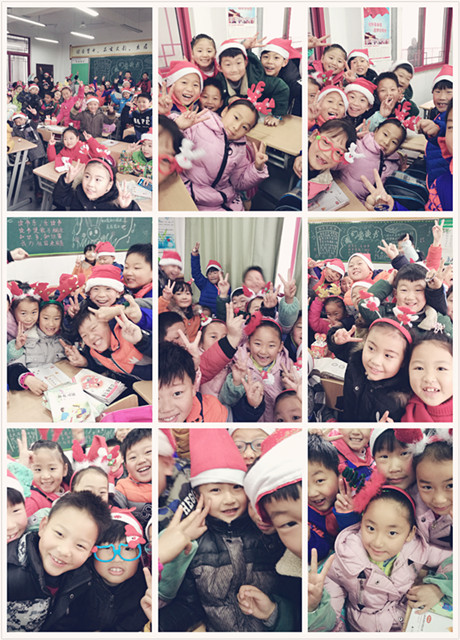 上午第三节课,二(4)的郭老师和俞老师装扮成圣诞老人,抱着54本书和54支糖果走进班级,给54个孩子带去了一个大大的惊喜。孩子们收到礼物后爱不释手,一个个小脸上激动地闪着光。