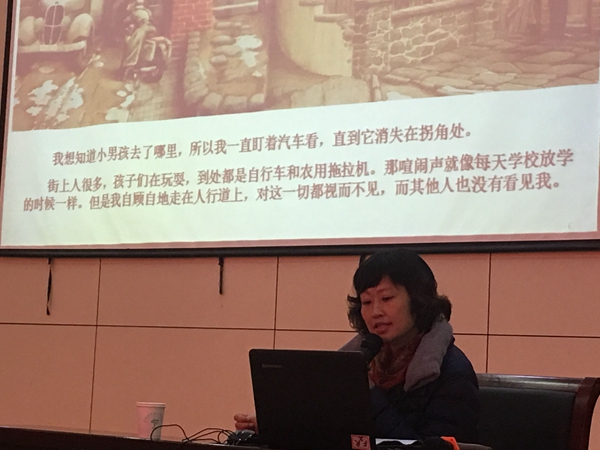近日,逍遥津小学的王静老师应经济开发区芙蓉小学的邀请,给高年级的孩子们进行一场与众不同的读书讲座——《聊聊读书那些事儿》。这不是一个普通的读书讲座,这是一场精彩的故事会,这是一次好书分享会,这是一堂关于生命教育的讲堂……王静老师在讲座中给孩子们推荐了一本本经典书籍:《铁丝网上的小花》给孩子们带来心灵的触动与震撼,《战马》让孩子们体会到战争背后人性最深处的美好感情,林格伦的《淘气包埃米尔》,《长袜子皮皮》《小飞人卡尔松》、给孩子带来无尽的快乐……王静老师与孩子一同分享了和班级同学读书的故事,孩子们兴趣盎然。