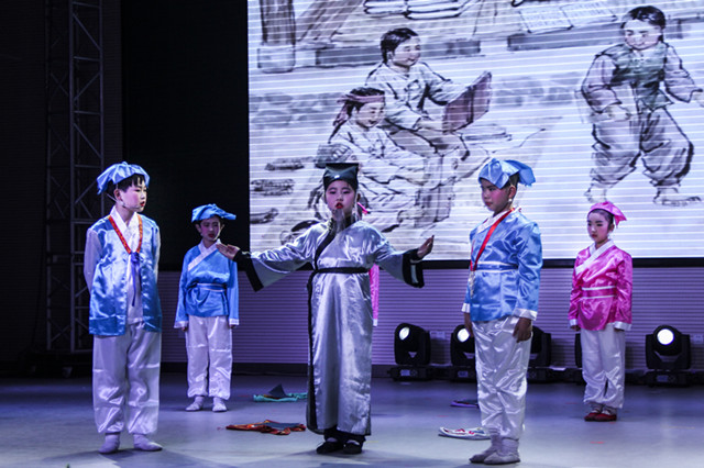 逍遥津小学的孩子们代表庐阳区参加了国粹芳菲润庐州——“迎新年”合肥市学校少年宫戏曲专场演出。一场孩子们自编自演的黄梅戏《少年正气歌》将历史人物文天祥志存高远,刻苦攻读的精神演绎得活灵活现。孩子们通过唱念做打、说学逗趣等黄梅戏特有艺术语言演绎历史故事,传递社会主义核心价值观,赢得与会代表的热烈掌声!