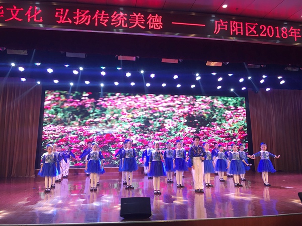 近日,合肥市逍遥津小学参加了2018年庐阳区“传承中华文化 弘扬中华美德”中小学经典诵读展演。10月25日,所有参赛学生在姚明伟校长的带领下,赴庐阳高中参加比赛, 逍遥津小学选送的《四季花海》以第一名的成绩夺得了一等奖。