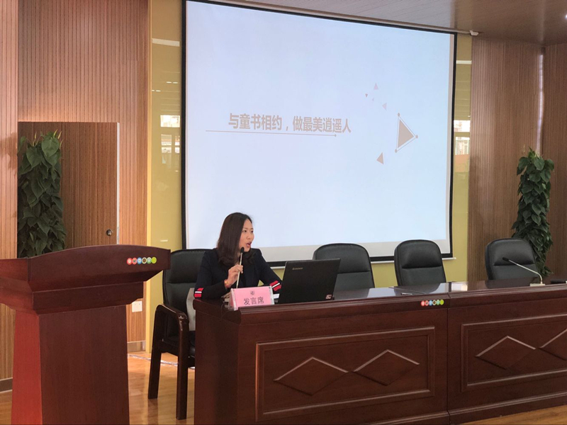 3月27日下午,春光明媚,春色怡人,庐阳区2018年春季小学教学工作会议在南国花园小学和煦园校区举行。区教体局周宗华副局长、相关科室负责人、各校业务校长、教务主任及教研组长、备课组长参加了此次会议,区教研室杨立新副主任主持会议。会中,合肥市逍遥津小学语文教研组长何樱莉老师代表学校做了《与童书相约,做最美逍遥人》的交流汇报。何老师从全方位推进全员阅读、课内外阅读整合,大单元教学和课题研究提升教师专业素养等三个方面介绍了逍遥津小学在推进师生阅读方面所做的工作。