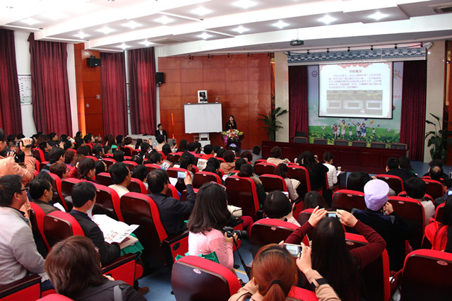 在校区大礼堂,袁红卫校长致辞并以《我们一起读书的日子》为题向代表们介绍了学校在经典阅读推进、在书香校园建设方面所做的工作。我校自2014年成为亲近母语实验基地校并正式挂牌后,一直致力学校阅读生态优化,营造“阅读场”,通过成立经典阅读研究中心推进经典阅读课程实施,已经形成教师读书、家长读书、学生读书良好局面。阅读课程推进提高了老师、学生的语文素养,提升了学校的办学品质。