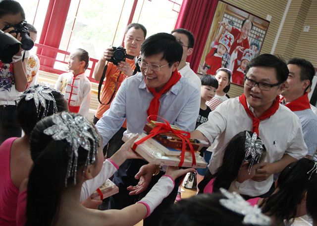 合肥市市委宣传部副部长、市文明办主任魏常年,市教育局基教处处长谢华国,合肥市庐阳区区委书记吴劲,区委宣传部长李仲生、教体局党委书记张振发、局长殷硕景等领导也赶来参观,并为孩子送上节日的祝福和问候。