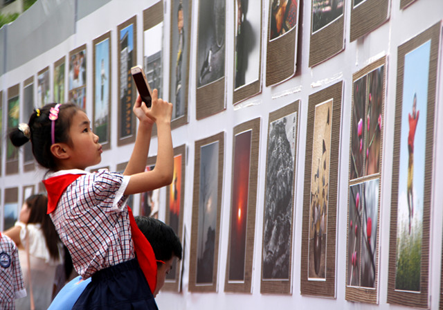 影像美展区,孩子们用自己的"绿眼睛"找寻生活美好,用相机去定格平凡的生活瞬间。身边的场景,熟悉的街头,习以为常的校园生活,这些非决定性瞬间却让我们着迷。