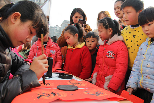 “同学你学写毛笔字几年了?你家春节的对联都是你自己写的吧?”3月9日下午,逍遥津小学低年级学生及家长代表约700人参加了城市少年宫举行了少年宫社团现场选课仪式,现场一位家长在参观墨香社团学员现场书写展示后,禁不住发出啧啧赞叹,在得到肯定回答后,立即带着孩子向社团老师递交了报名意向表。