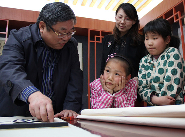 李明阳还向孩子们介绍了如何给作品落款并补充了相关印章知识,让孩子们大开眼界。